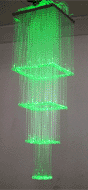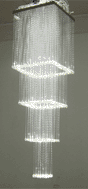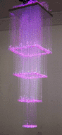 Chandelier is combined with R-series or H-series Light Engine (illuminators), and sparkling fiber optic of 1X1.0mm or 3X0.75mm. Since the Light Engine may be in DMX mode, the size of the chandelier is unlimited. It is only limited by imagination.